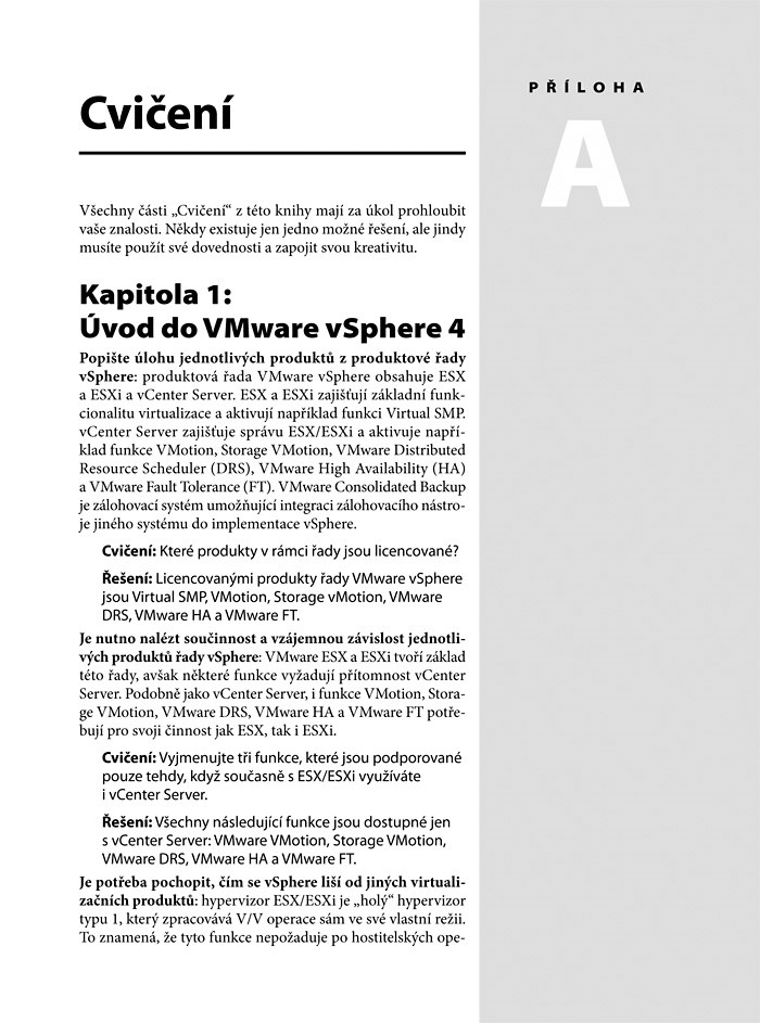 Jako prémii autor přidal tři přílohy: jedna nabízí řešení všech cvičení z knihy, další obsahuje podrobný popis běžných příkazů v Linuxu a v ESX a poslední popisuje osvědčené postupy ve VMware vSphere 4. O autorovi: