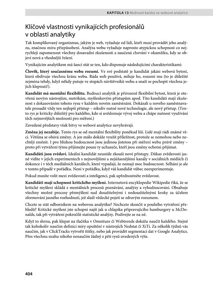 Kompletní průvodce představuje revoluční analytické metody a modely kombinující jednoduché i výkonnější nástroje analytiky pro zpracování veškerých dat, experimentů i testování. Naučíte se, jak měřit, analyzovat a zacházet s nejrychleji se rozvíjejícími webovými technologiemi a trendy – včetně sociálních médií, videa, mobilních technologií a na zákazníky zaměřených online služeb. Autor poskytuje konkrétní, snadno pochopitelné, pokročilé metody, s nimiž dosáhnete vrcholu analytiky. Naučíte se mimo jiné, jak: