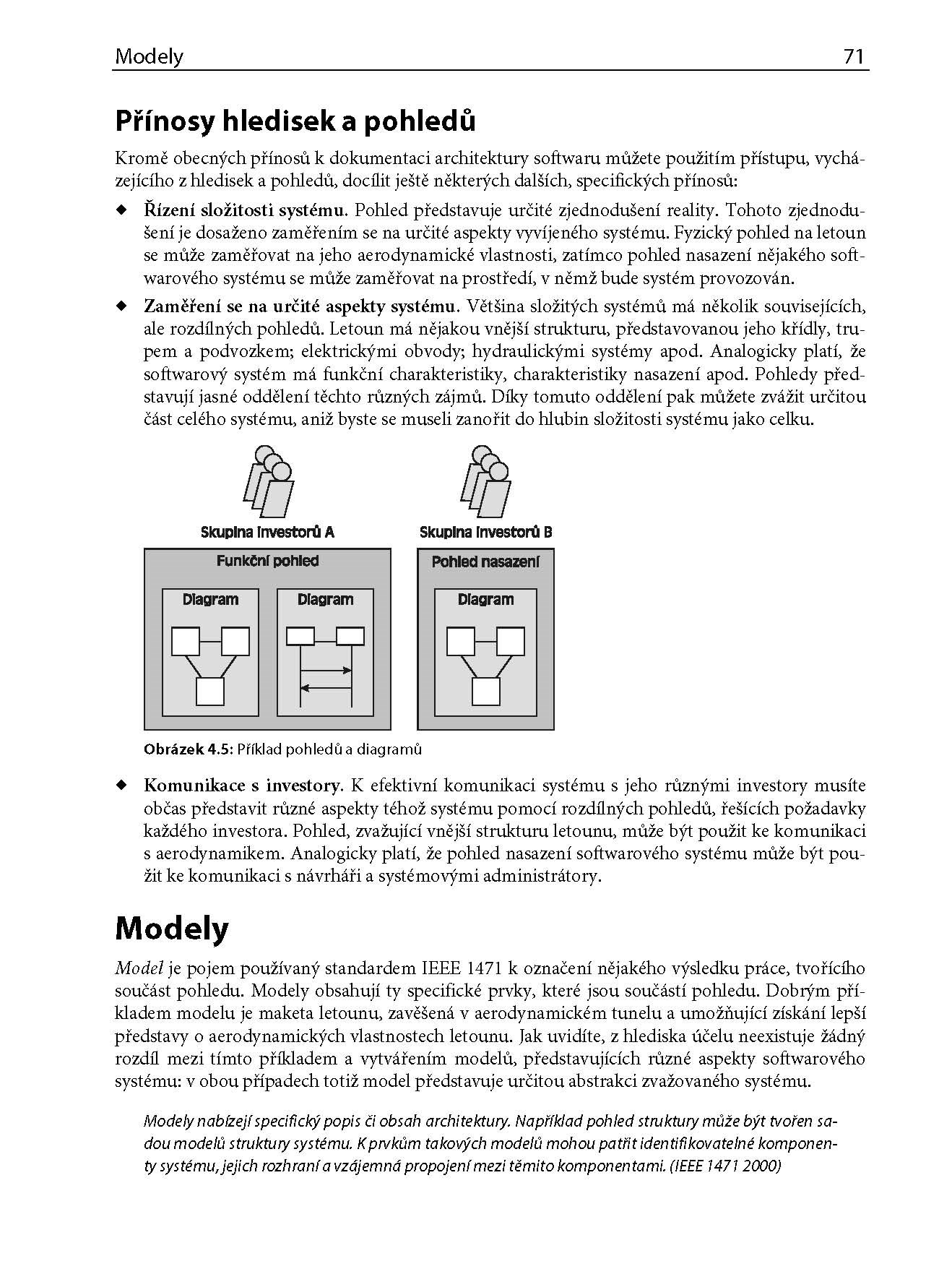 Kniha je nepostradatelným zdrojem informací nejen pro softwarové architekty, hodnotné informace v ní najdou i projektoví manažeři, vedoucí vývojových týmů, programátoři, testeři a analytici. O autorech: