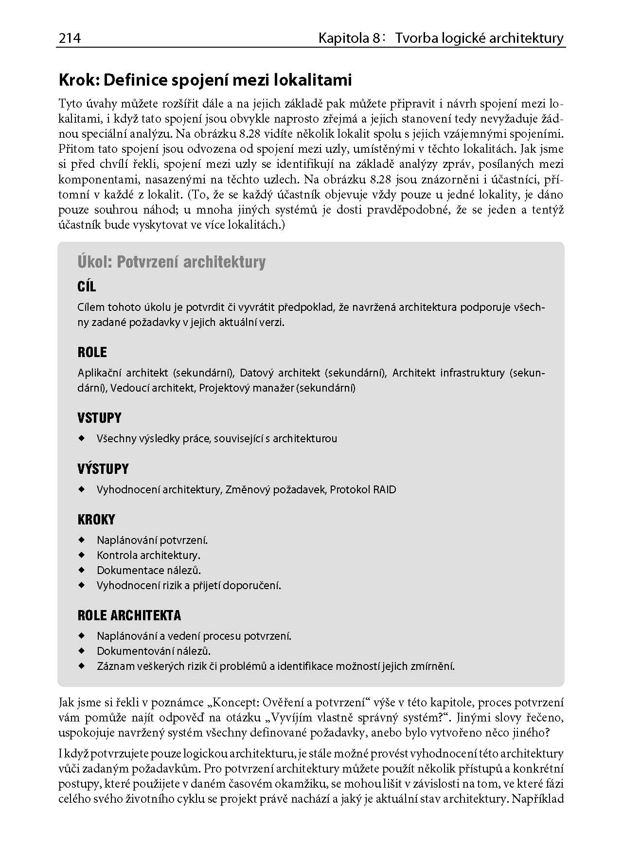 Dvojice autorů vám představí základní postupy nutné pro správný návrh robustní architektury, stejně jako proces tvorby dokumentace a znovupoužitelných prvků architektury. Veškeré poznatky jsou v dalších kapitolách demonstrovány na případové studii. V ní se autoři zaměřují na roli architekta v procesu vzniku softwaru a obvyklé problémy, které tento proces mohou provázet. Knihu uzavírá soubor univerzálních postupů, které lze aplikovat na většinu dnes vznikajících složitých systémů. V knize se mimo jiné naučíte: