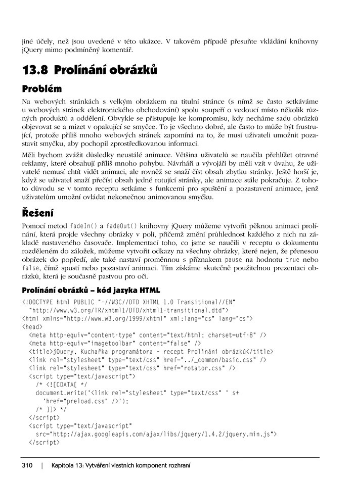 Zaujala vás knihovna jQuery a rádi byste věděli, jak ji co nelépe využít ve svých projektech? Chtěli byste jednoduše obohatit své webové stránky o zajímavé interaktivní prvky a zároveň nenarušit jejich funkčnost a vzhled v různých prohlížečích? Díky této knize budete mít k dispozici vyčerpávající sbírku návodů, řešení problémů a praktických příkladů použití knihovny jQuery.