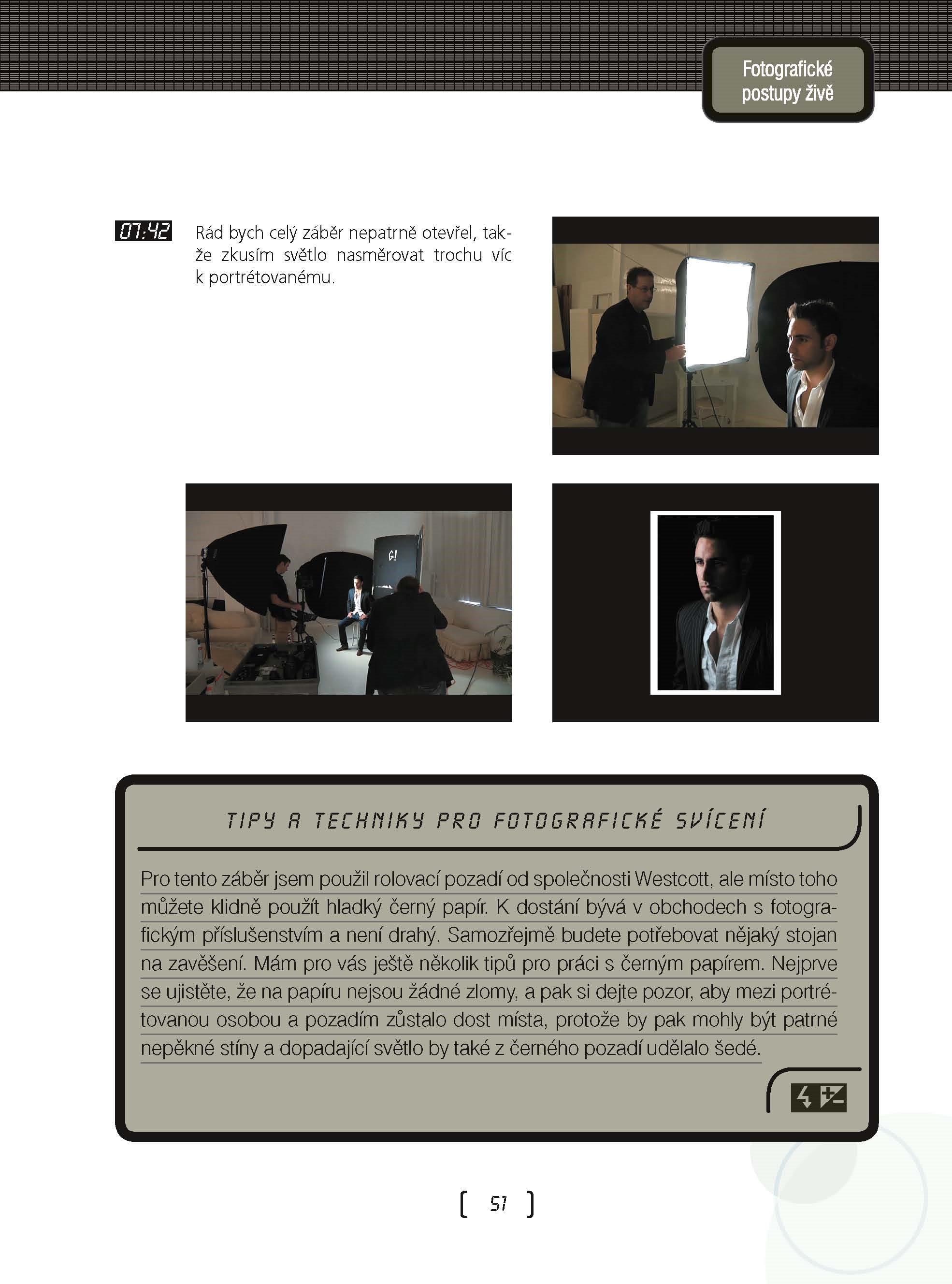 Protože za každou skvělou fotografií se vždy skrývá práce s nejrůznějšími druhy osvětlení, věnuje se výklad především tomu, jak naplno využít přirozené sluneční světlo stejně jako umělé zdroje osvětlení. Nahlédněte pod ruce zkušenému fotografovi a osvojte si postupy, díky kterým dosáhnete úžasných výsledků s minimem prostředků.