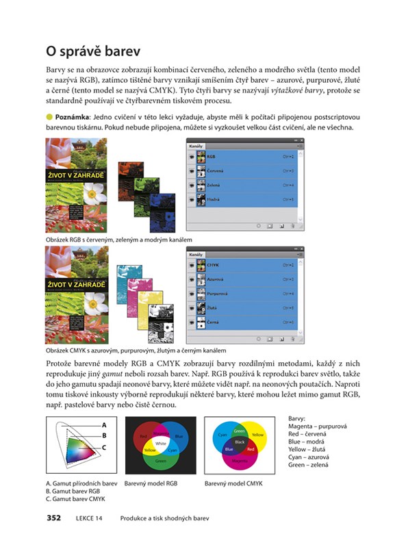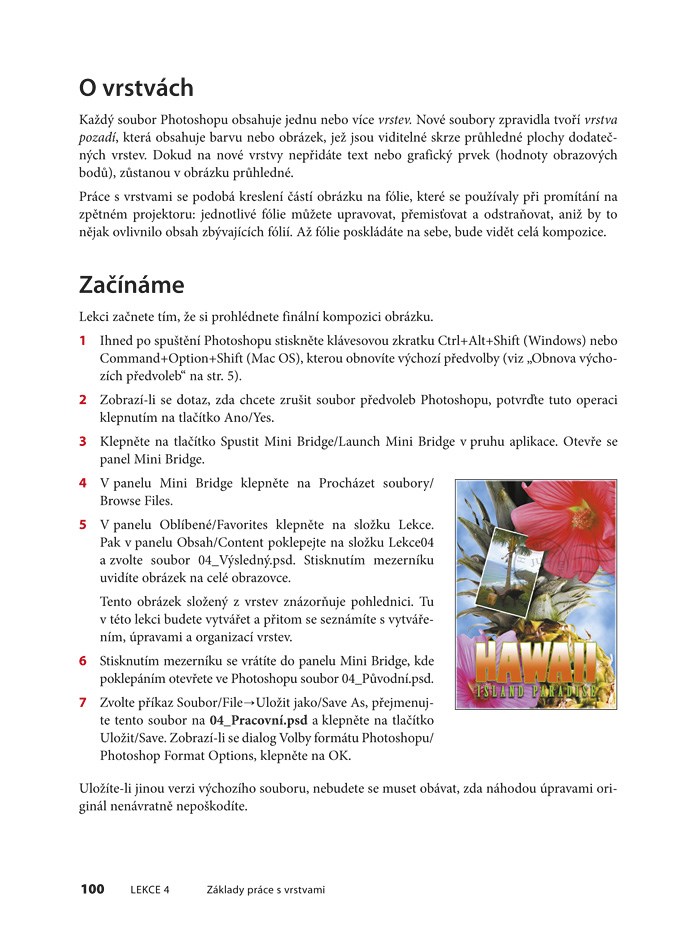 Kniha obsahuje prvky jak českého, tak anglického uživatelského rozhraní Photoshopu.