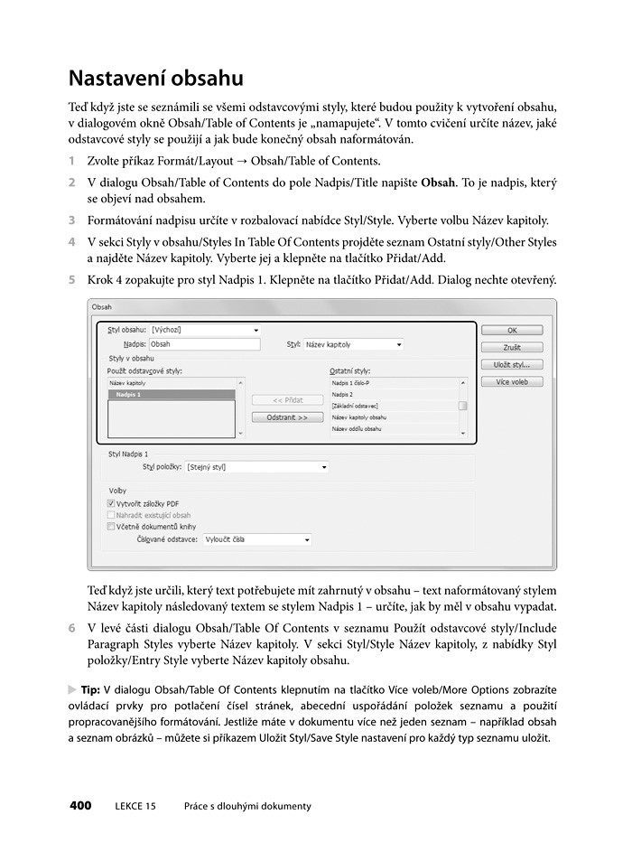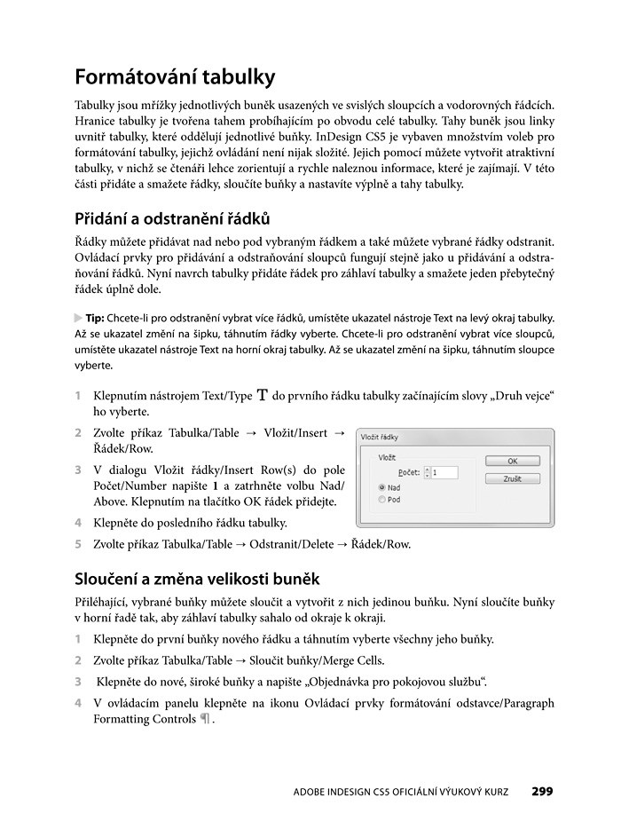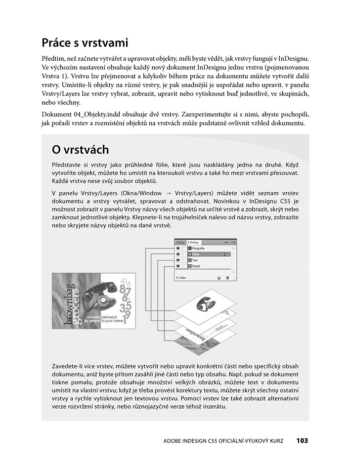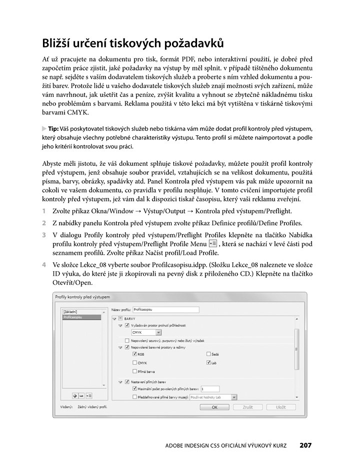 Kniha obsahuje jak české, tak anglické prvky uživatelského rozhraní InDesignu.
