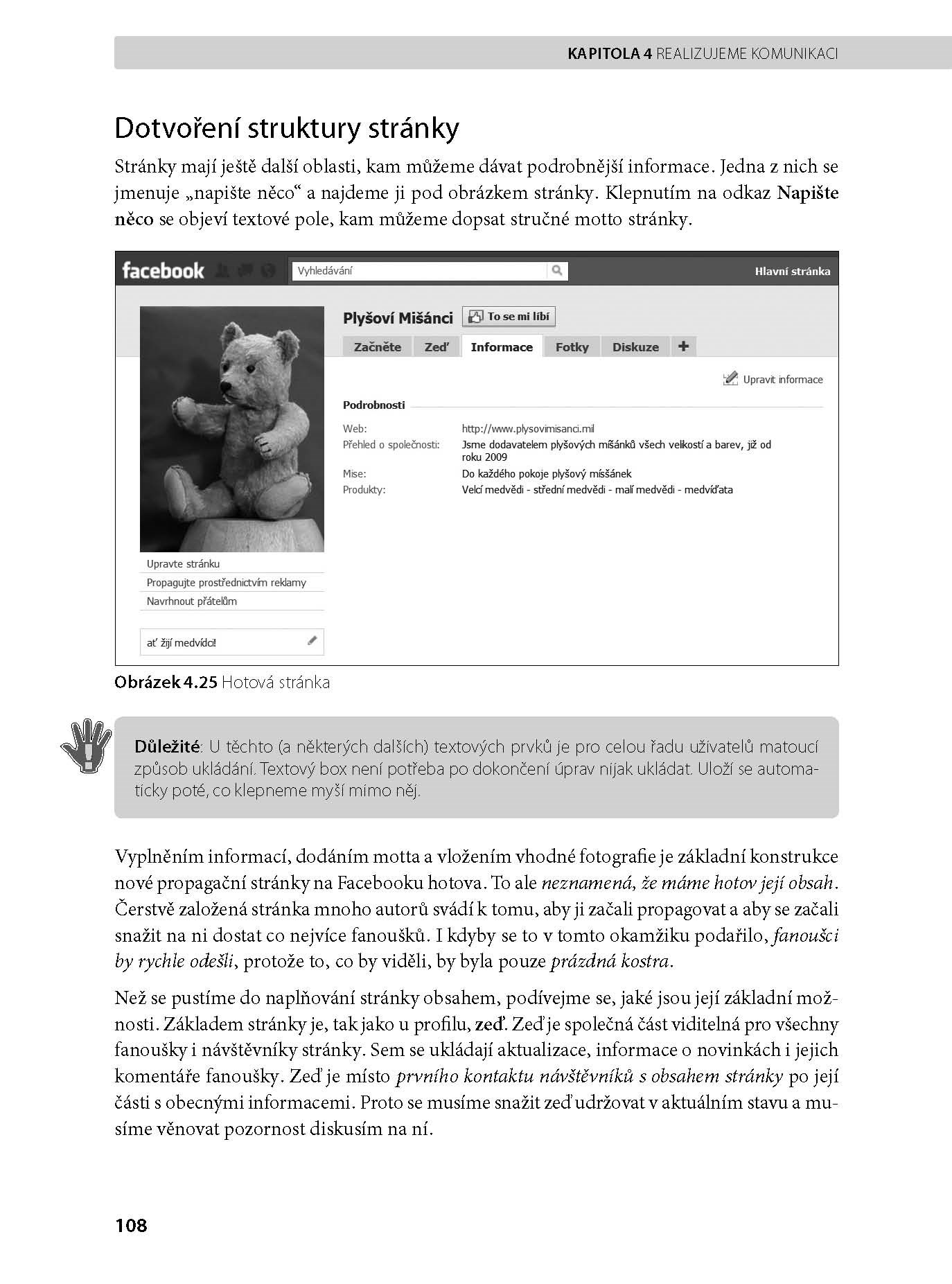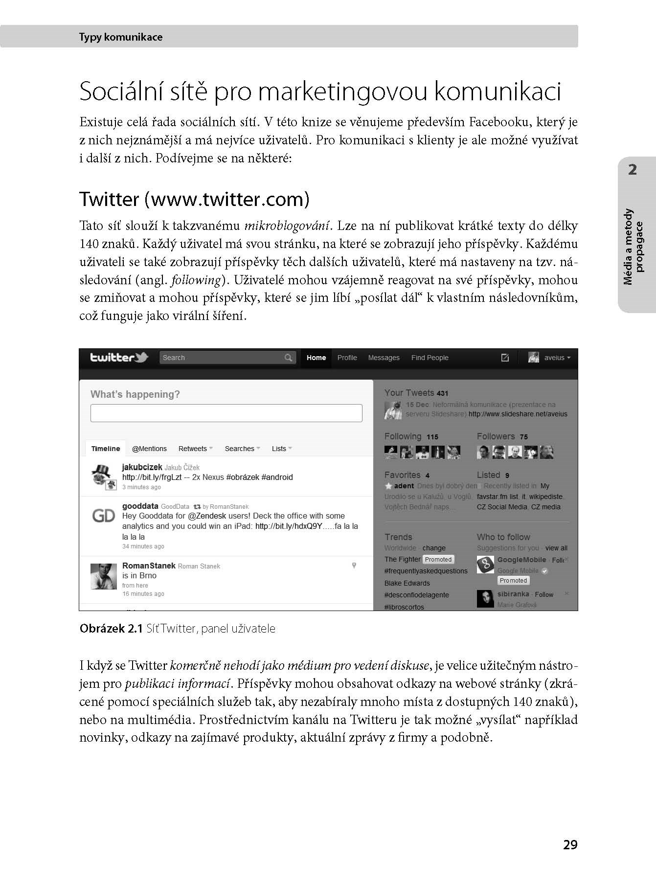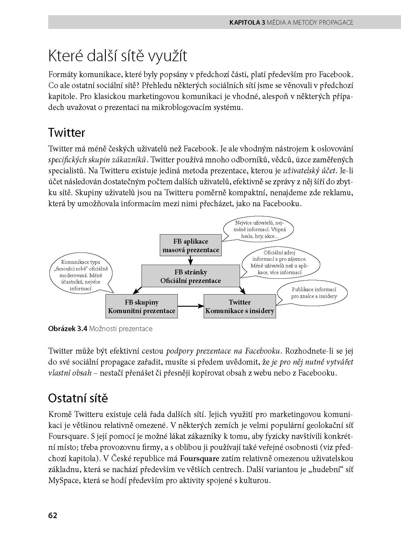 Uznávaný odborník s detailní znalostí specifik českého Internetu a sociálních sítí zvlášť vás jistou rukou provede jednotlivými fázemi kampaně. Naučíte se vybírat vhodnou sociální síť pro váš záměr, poznávat a pracovat se svým publikem a vyhodnocovat přínos své internetové prezentace. Výklad je obohacen o řadu aktuálních příkladů z praxe, konkrétních tipů a doporučení i varování před krátkozrakými praktikami. S knihou se mimo jiné naučíte:
