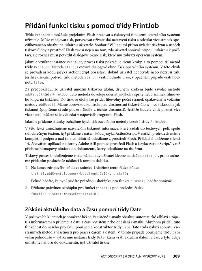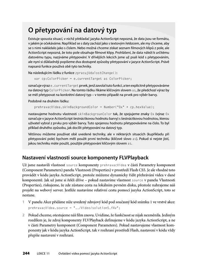 Oficiální výukový kurz pro ActionScript obsahuje 15 lekcí, v nichž se sami krok za krokem naučíte vše od základů až po ovládání videa, tvorbu animací a grafiky nebo práci s elektronickou poštou pomocí jazyka ActionScript. Mimo to kniha poskytuje množství tipů a technik, díky nimž se při práci s ActionScriptem a Flashem stanete produktivnějšími. V jednotlivých lekcích budete vytvářet skutečné projekty, díky nimž své vědomosti a znalosti postupně zdokonalíte. Autoři se v knize mimo jiné věnují těmto tématům: