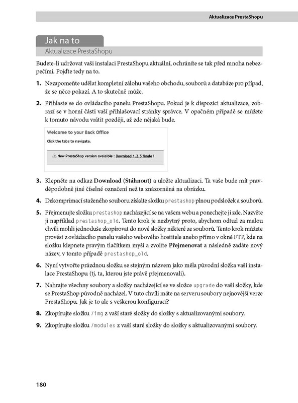 Kniha je přizpůsobena poslední verzi PrestaShopu 1.4 s českým rozhraním.