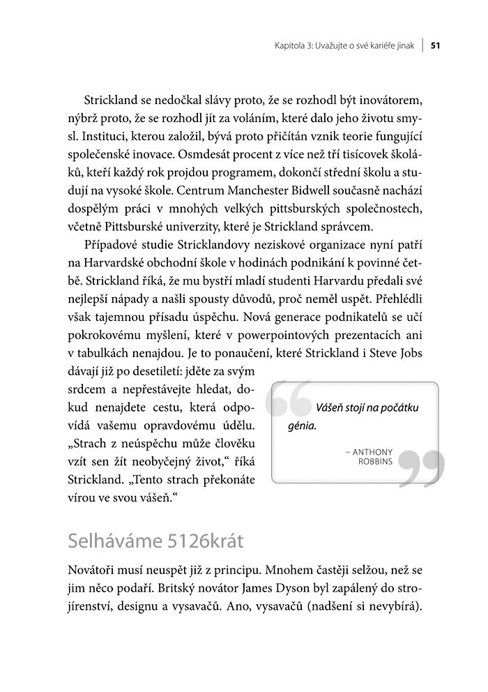 Tato kniha není životopisem Steva Jobse. Odkrývá zásady, jež Steva přivedly k nápadům bez hranic a které skutečně změnily svět: principy, jež můžete použít i vy při rozvíjení vlastního potenciálu, a dosáhnout tak průlomového úspěchu v obchodě i v životě.