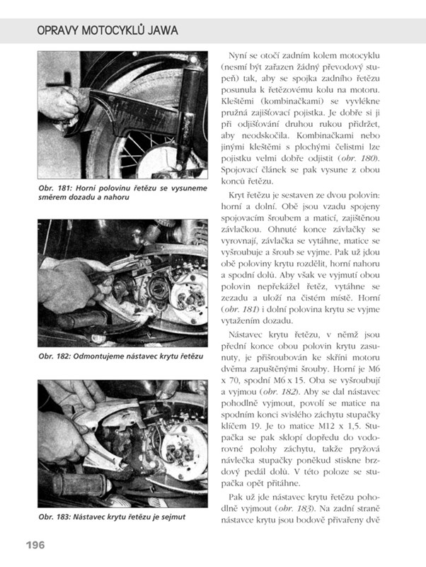 Jste majitelem motocyklu Jawa 250 nebo 350 cm3 a nevíte si rady s údržbou, seřizováním, opravami nebo rekonstrukcí některých složitých ústrojí motocyklu? Chcete poznat a pochopit princip činnosti karburátoru, dynama nebo převodovky vašeho motocyklu? Zkušený autor z národního podniku Jawa pro vás připravil nové vydání této nepostradatelné příručky, která by neměla chybět v knihovně žádného majitele motocyklů Jawa a ČZ. Zkušený autor v ní podrobně popisuje opravy a seřizování dvoudobých motocyklů včetně celkové demontáže a složení motoru, generální opravy dynama či revizi regulátoru dobíjení. Kniha je doplněna několika sty fotografií, nákresů a schémat pro lepší pochopení popisovaných oprav motocyklu.