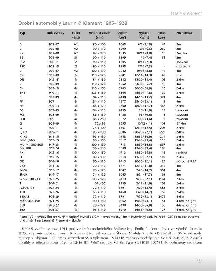 - počty vyrobených kusů a technický popis nejzajímavějších modelů
