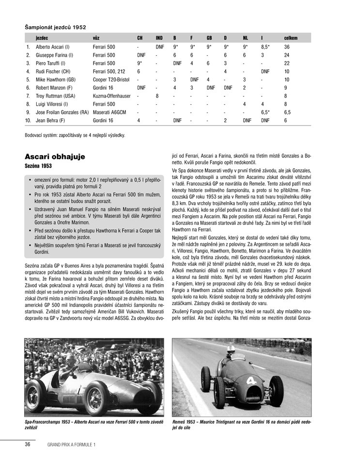 - přehledně zpracovaná historie závodů Grand Prix a Formule1 od roku 1894