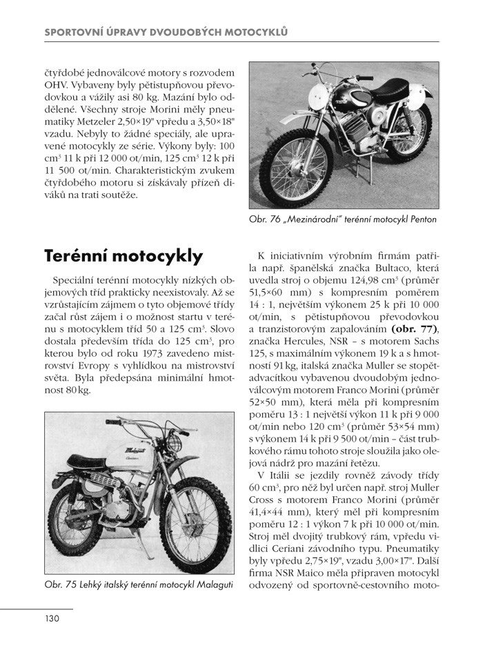 - silniční, terénní, soutěžní a plochodrážní motocykly