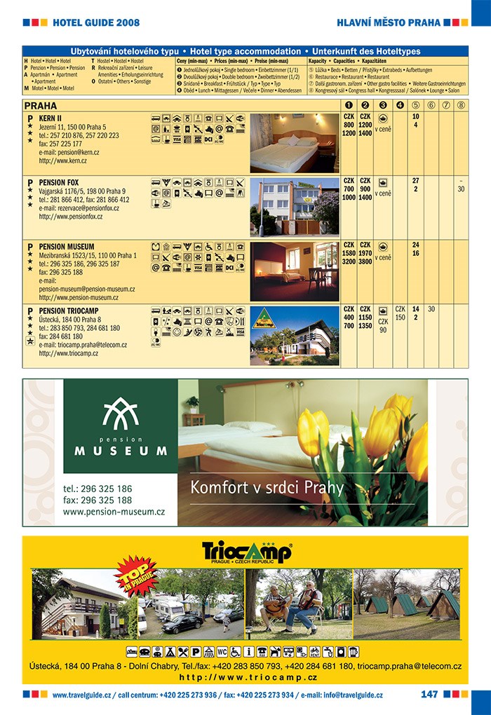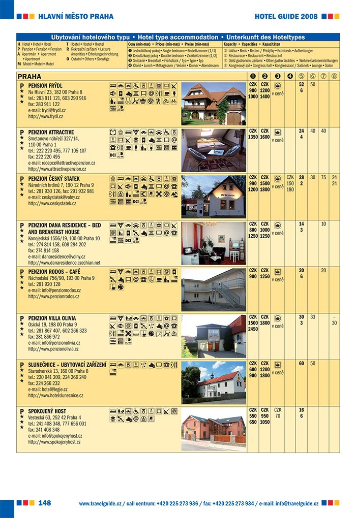 Jedná se o 16. vydání nejobsáhlejšího knižního katalogu ubytování v České republice. Obsahuje přes 7000 údajů o ubytovacích a ostatních zařízeních včetně přímých kontaktních údajů a velkého množství plošných inzerátů jednotlivých zařízení. Stejně jako v loňském vydání najdete i v tomto ročníku Hotel Guide samostatný oddíl golfu se seznamem golfových hřišť. Záznamy v knize jsou členěny podle jednotlivých krajů do kapitol Hotel Guide (ubytování, kempy, restaurace), Congress Guide (kongresová zařízení), Spa Guide (lázně), Golf Guide (golfová hřiště) a Tourist Guide s výběrem nejzajímavějších turistických míst v ČR. Turistická část nabízí přehled turistických tipů včetně kontaktů a fotografií.