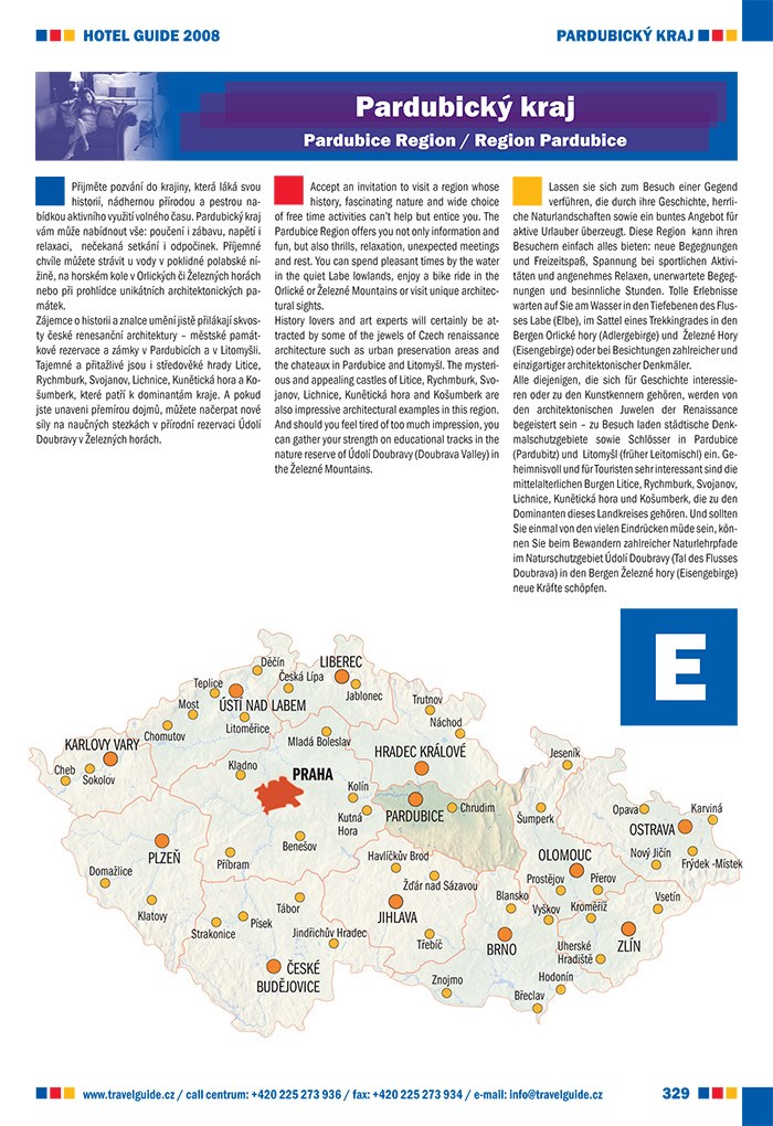 Elektronickou podobu katalogu najdete na webových stránkách www.travelguide.cz. Pro ty, kteří nemají stálý přístup na internet a přesto upřednosťnují raději elektronickou verzi katalogu, jsme připravili verzi katalogu Hotel Guide 2008 na CD.