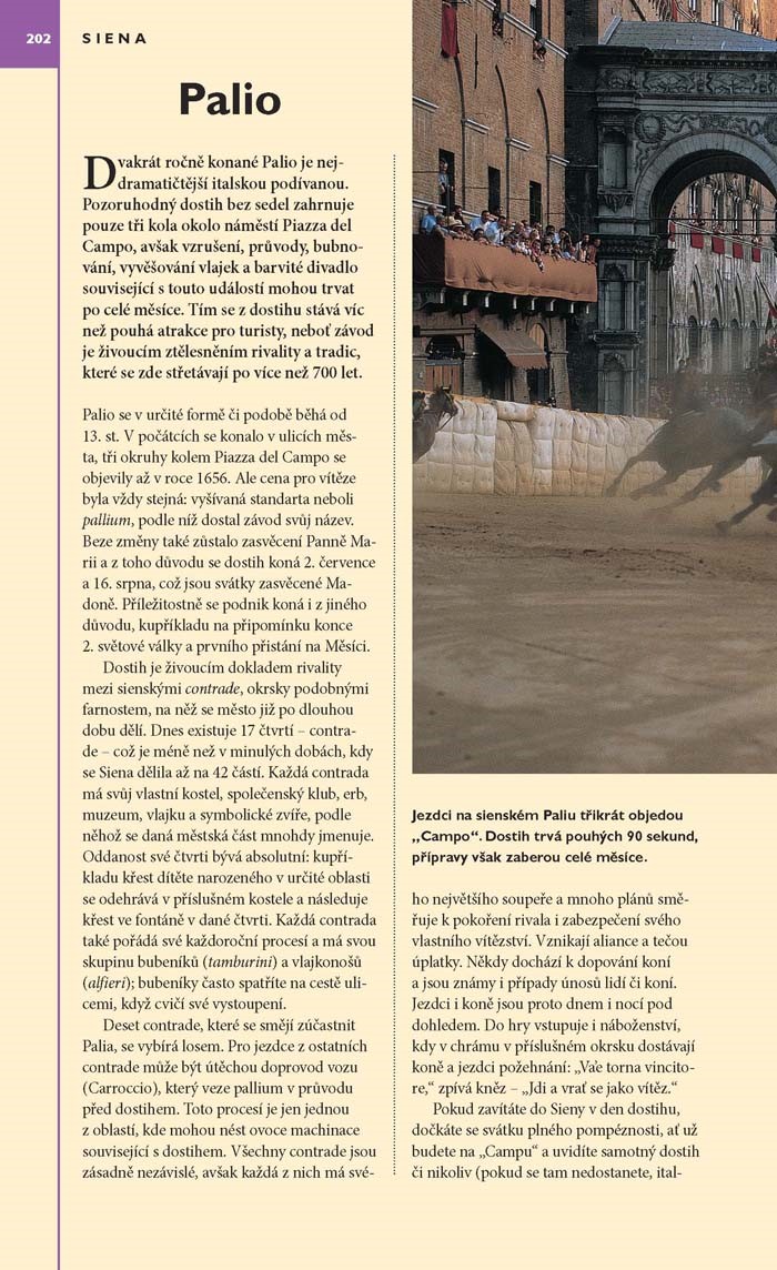 - Pěší prohlídky a projížďky: doporučené trasy zakreslené na mapách a popsané v textu, jako např. procházka z náměstí Piazza della Signoria k Sant’Ambrogio, projížďka Casentinem či projížďka oblastí Chianti.