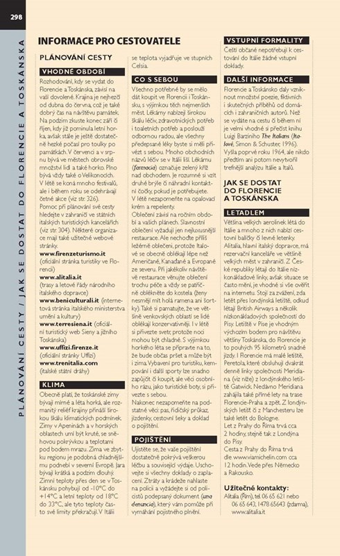 - Tipy pro plánování cesty: ucelené, podrobné informace o Florencii a Toskánsku, které vám umožní naplánovat si návštěvu podle vlastních zájmů a časových možností.