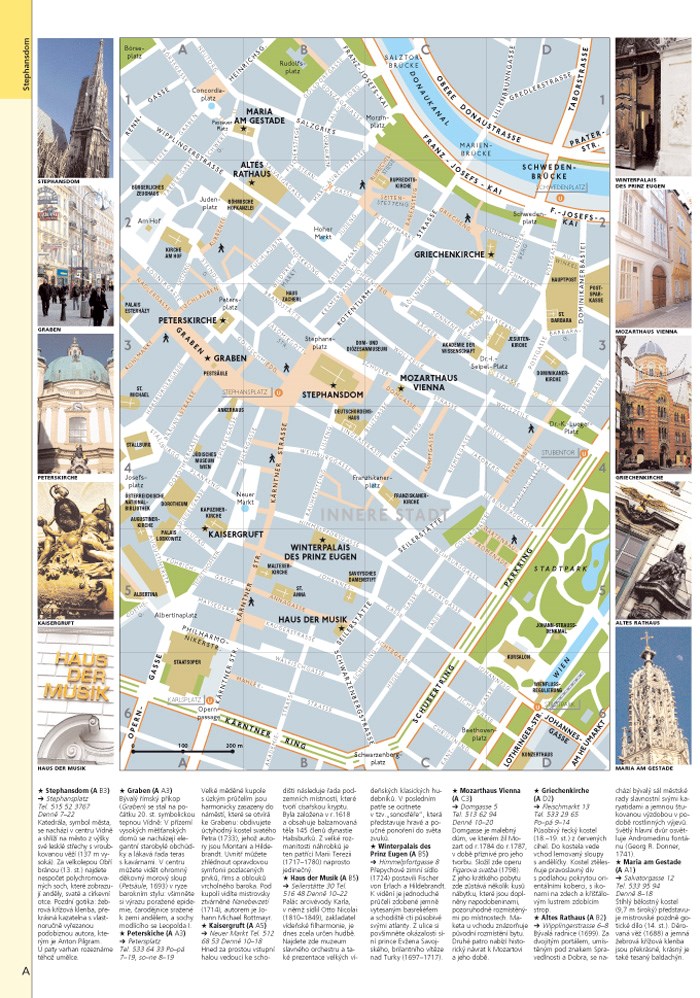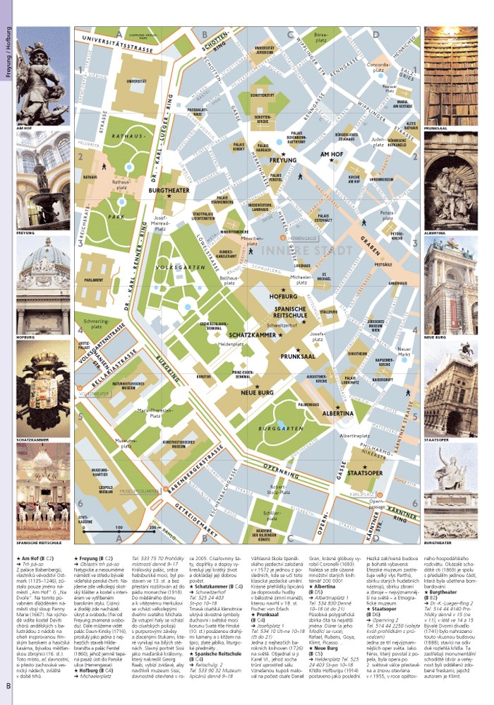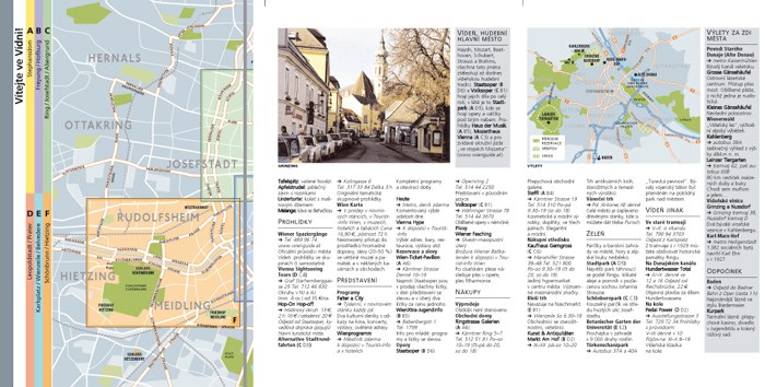 Čtenář a cestovatel zde najde informace nejen o historii a památkách, ale i k zábavě, nákupům či stravování, jakož i praktické rady o dopravě, otevíracích dobách, cenách a spoustu dalších užitečných tipů. Podrobný plánek města nalezne na jednoduchých rozkládacích mapách zobrazujících jednotlivé čtvrti a části města.