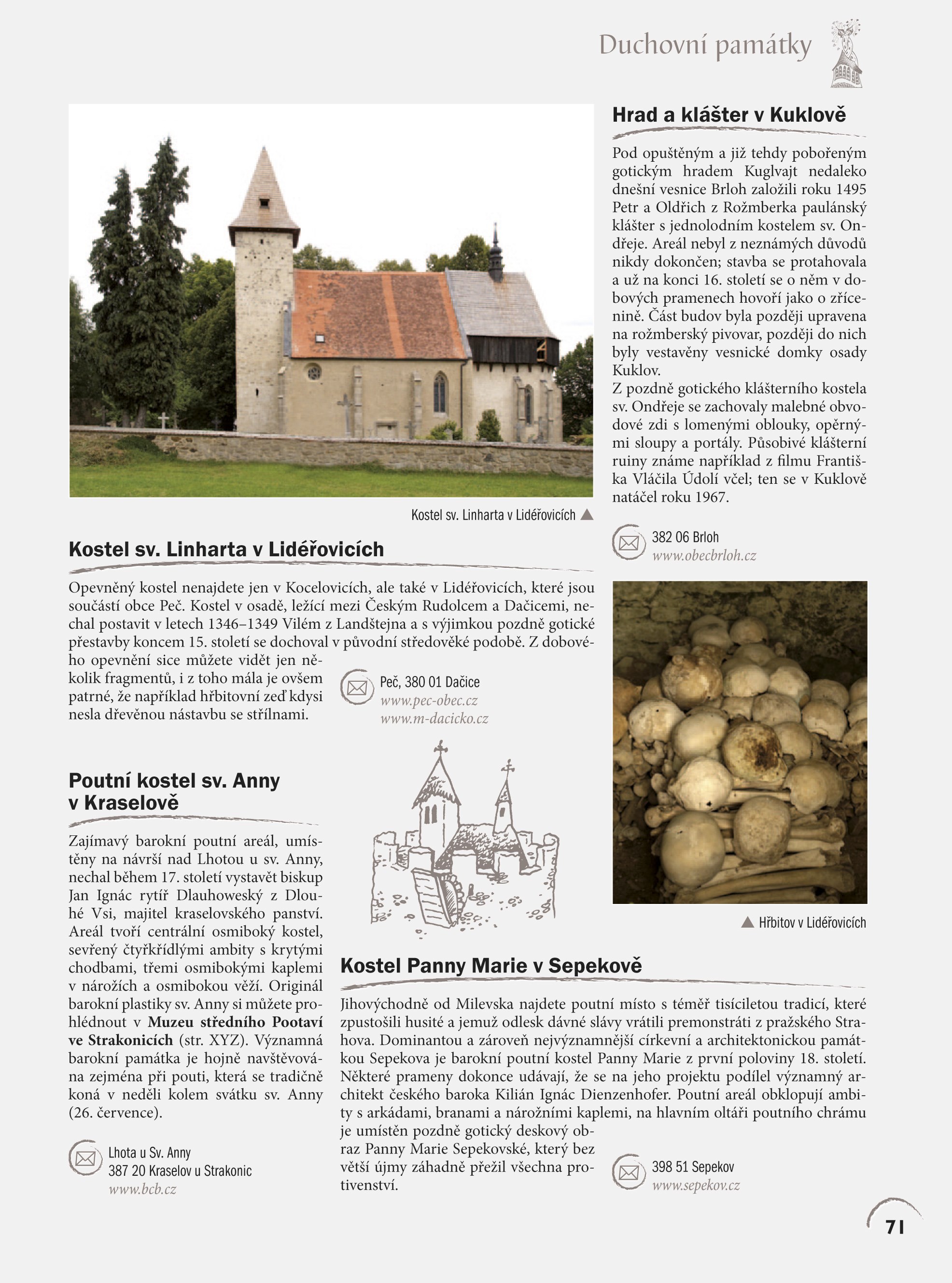 Pro ty, kteří chtějí objevovat zajímavá místa v České republice, jsou připraveny průvodce z edice Kam. V jednotlivých titulech naleznete tipy na výlety v různých tematických okruzích, a to jak do přírody, tak do nejrůznějších kulturních i sportovních zařízení. Kam poradí rodičům s dětmi i těm, kteří vyrážejí na prázdniny sami. Ať plánujete dovolenou do míst nepoznaných, či chcete na oblíbeném místě najít něco nového, právě pro vás je určena tato edice. Všechny informace jsou ověřeny a navíc jsou doplněny kontaktními údaji a internetovými adresami. Také v příštích sezonách si tak můžete snadno ověřit např. otevírací dobu. Ke snadnějšímu výběru napomohou jistě i barevné fotografie, kterými jsou knihy bohatě vybaveny. Stovky nápadů na příjemné strávení volného času pomohou vyřešit otázku „Kam?“ i těm zcestovalým.