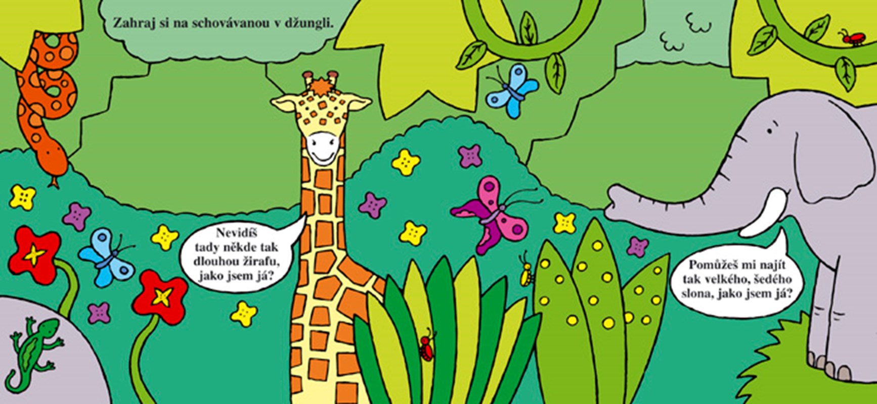 Džungle je také plná roztodivných zvířátek. Jsou veselá a hravá. Ráda se schovávají. S tím si ale děti snadno poradí. Vždyť stačí jednoduchý pohyb páčkou a zvířátko se objeví! Tato interaktivní kniha je plná milých ilustrací. Zábavnou formou děti seznamují s tím, kdo v džungli žije a jak vypadá. Rozvíjí přirozenou zvídavost a fantazii dětí. Uvidíte, že schovávaná v džungli je doopravdy zábavná!