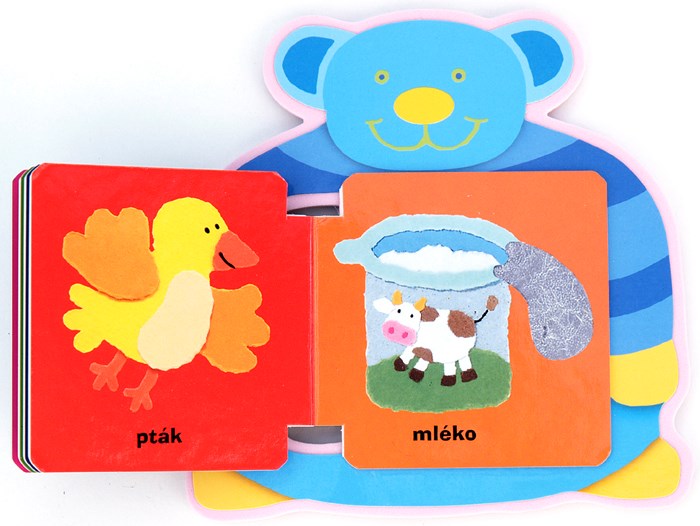 Tato milá kniha pro děti je plná krásných a dětem blízkých ilustrací znázorňující slůvka, které si malé děti osvojují mezi prvními. Děti zde naleznou nejen zvířátka, běžné předměty dekaždodenní potřeby, ale i oblíbené pohádkové postavičky. Leporelo je navíc vyrobeno z praktických a odolných materiálů. Má velmi praktický tvar - držátka, který se dětem dobře uchopuje, takže si s ním mohou hezky hrát.