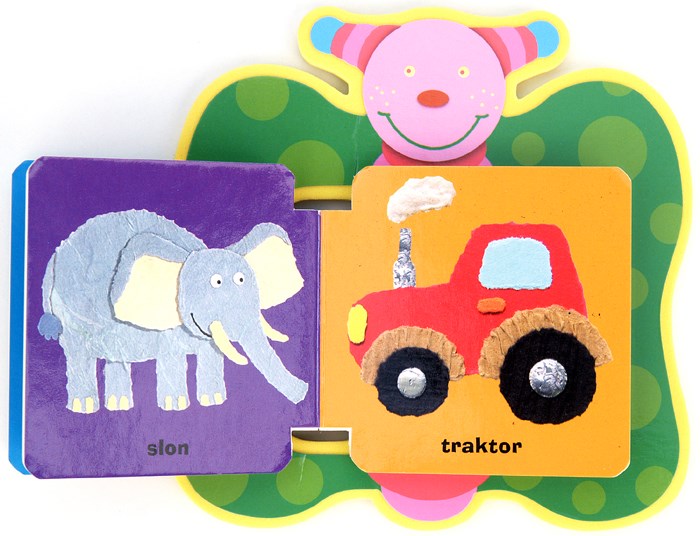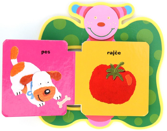 Tato milá kniha pro děti je plná krásných a dětem blízkých ilustrací znázorňující slůvka, které si malé děti osvojují mezi prvními. Děti zde naleznou nejen zvířátka, běžné předměty každodenní potřeby, ale i oblíbené pohádkové postavičky. Leporelo je navíc vyrobeno z praktických a odolných materiálů. Má velmi praktický tvar - držátka, který se dětem dobře uchopuje, takže si s ním mohou hezky hrát.