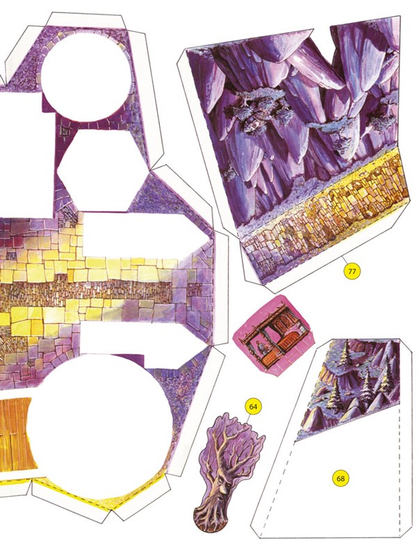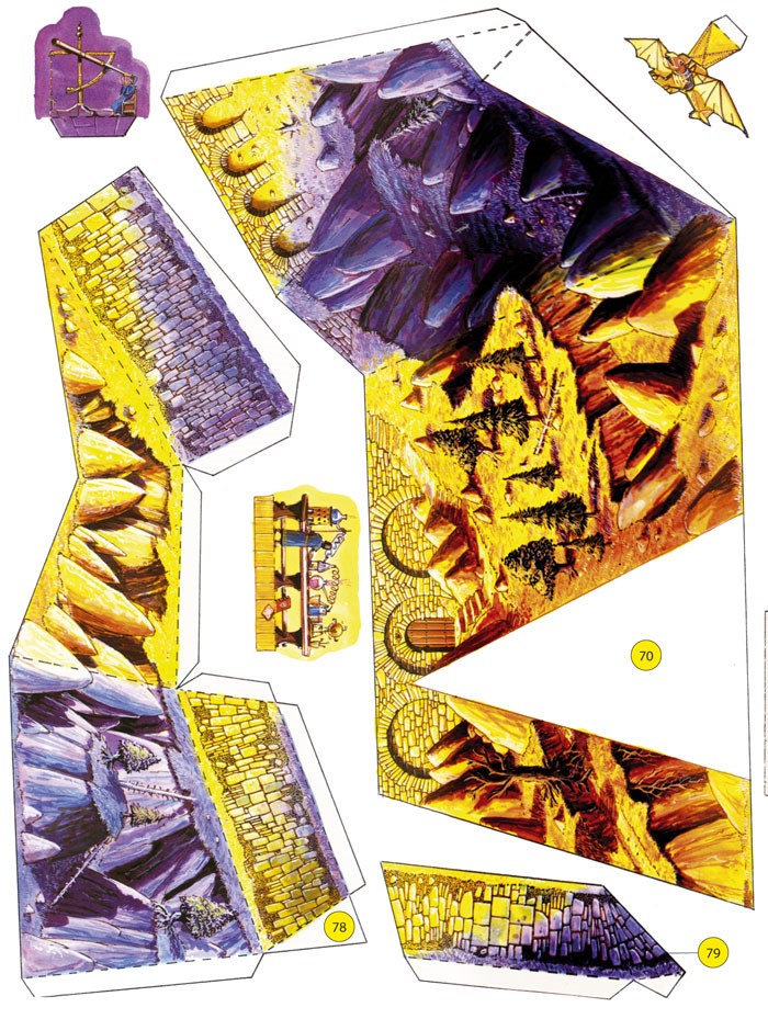 Šikovné ruce a pár běžně dostupných pomůcek promění tuto knihu v úžasný model čarodějova hradu postaveného na vysoké skále!