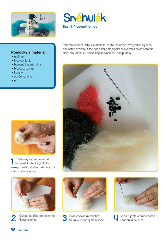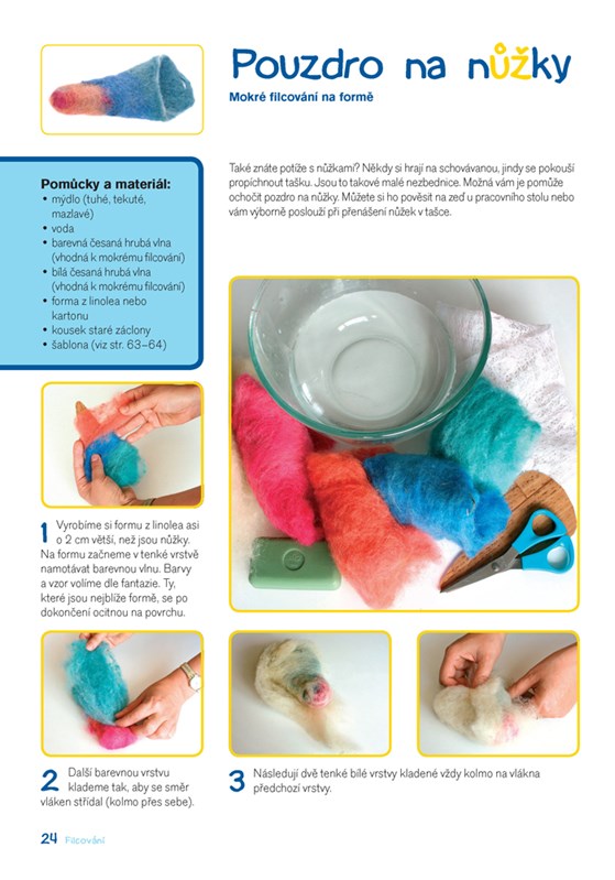 Nechtě se inspirovat touto knihou a s pomocí fi lcovací jehly, rohože či mýdla si z ovčí vlny ufi lcujte roztomilé zvířátko, originální fi gurku, dekorativní obrázek nebo praktický obal na mobil či fl étnu. V knize naleznete celkem 17 zajímavých nápadů na tvorbu po celý rok i s podrobným návodem výroby a názornými barevnými fotografiemi.