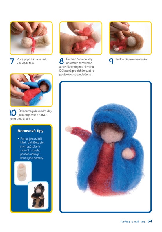 Kniha nabízí širokou škálu možností tvorby z přírodní i barvené ovčí vlny