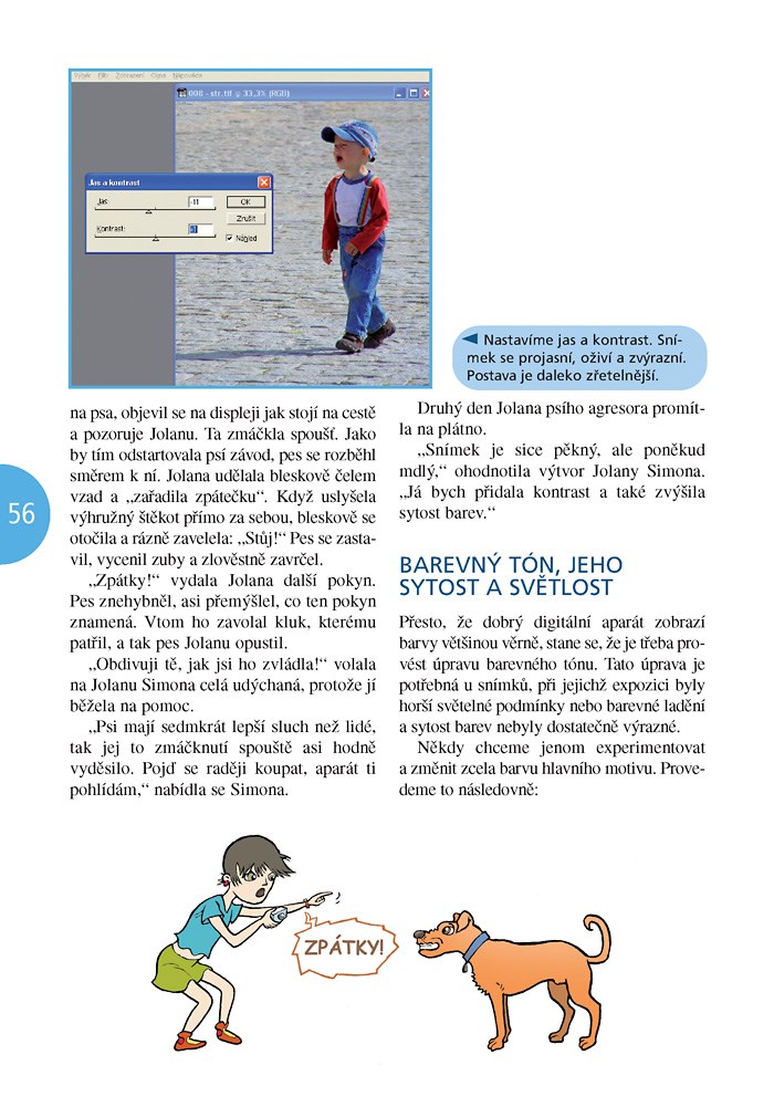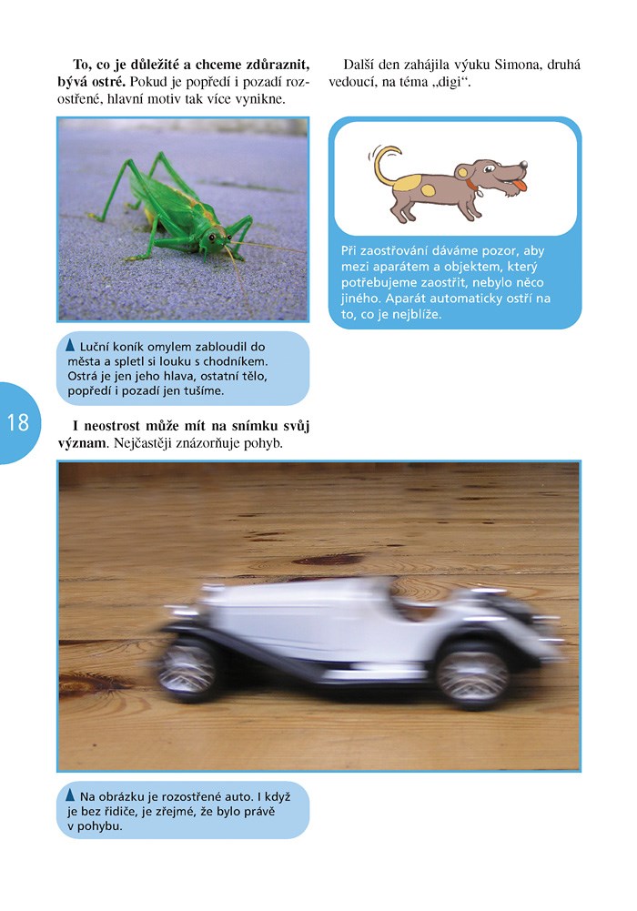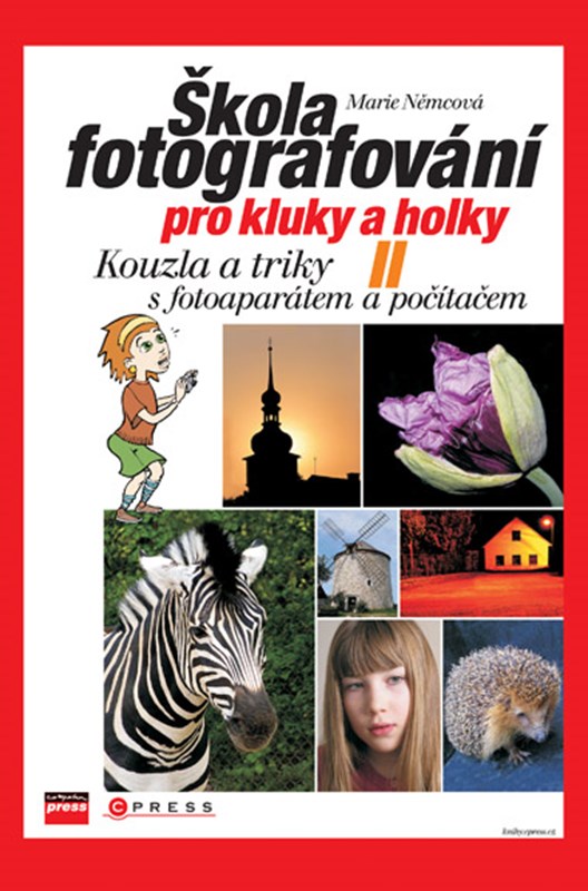 Další pokračování přívětivě napsaného průvodce pro děti kombinující příběh z letní Školy fotografování a přístupný výklad základních fotografických technik. Přehledný text je doplněn ilustracemi a mnoha fotografiemi. Přátelé Honza, Ondra, Matěj, Andrea a pes Alfréd vám společně s dalšími kamarády odhalí tajemství správného pořízení dobrých digitálních fotografií. Naučíte se s nimi, co je to hloubka ostrosti, clona a doba expozice. Dále poznáte jak používat různé objektivy, jak fotografovat zvířata, oblohu, vodu, pohyb, květiny, portrét anebo jak se fotografuje v noci. Nakonec se naučíte fotografie upravovat v počítači a dělat s nimi různá kouzla.