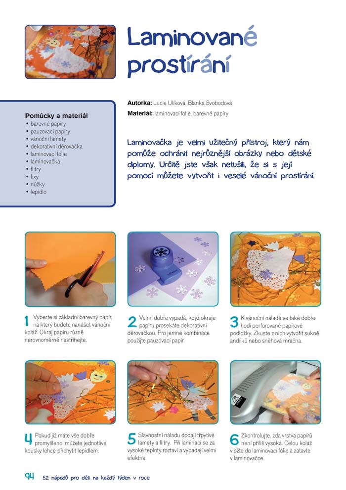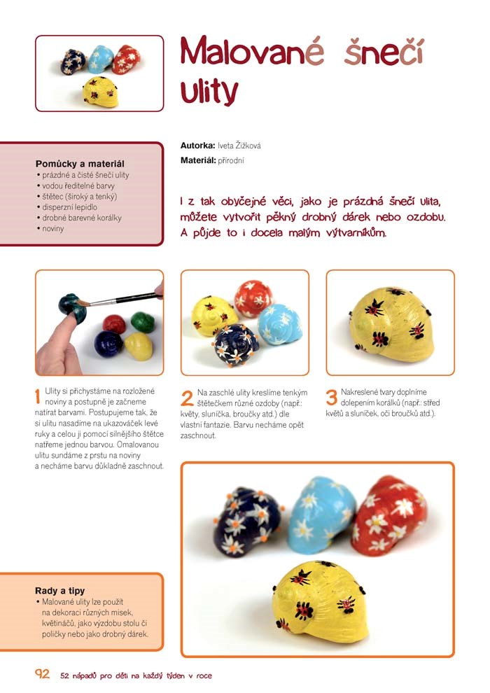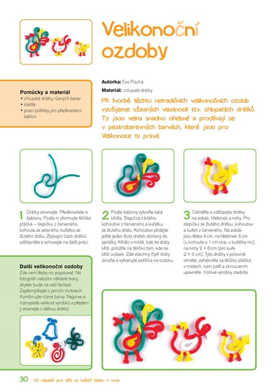 U každého nápadu je nejdříve uveden seznam materiálů a pomůcek, které budete ke své tvorbě potřebovat, a pak je již prostor věnován podrobnému návodu výroby konkrétního projektu, který navíc doprovází názorné barevné fotografie.