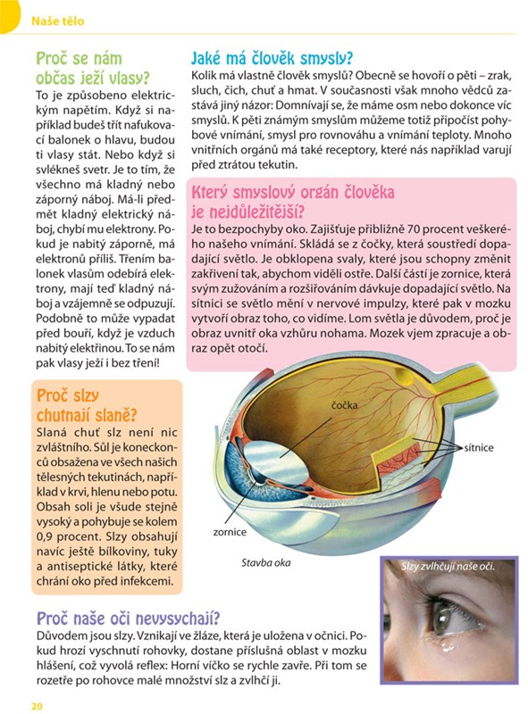 Proč jsou lidé většinou praváci? Jak se jmenují nejmenší savci na světě? V této knize naleznete odpovědi na zvídavé otázky, které zaujmou dětského i dospělého čtenáře. Lehkou a zábavnou formou získáte spoustu informací o lidském těle, zdravé výživě a zvířatech a rostlinách. Děti jistě ocení i tipy na spoustu zábavných experimentů. Text je doplněn názornými obrázky a poutavými fotogafiemi.