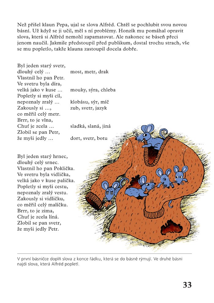 - 2) úkoly pro práci s textem, vedoucí k zaměření pozornosti na porozumění čtenému textu, rozvoji sluchové analýzy a syntézy, vytříbení jazykového citu a rozvoji logického myšlení