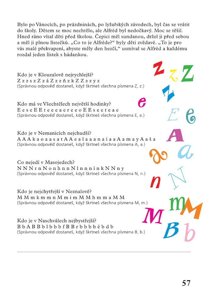 Přečtete-li si autorčin dopis dospělým v závěru knihy, dovíte se, jak přistupovat k rozvíjení čtení dítěte, které poněkud zaostává za spolužáky nebo má ve čtení větší obtíže, jak se vyvarovat nesprávných postupů, které ve svém důsledku vedou k neúspěchům ve škole a nechuti číst. Při větších obtížích je vhodné vyhledat pomoc, nejlépe v pedagogicko-psychologické poradně.