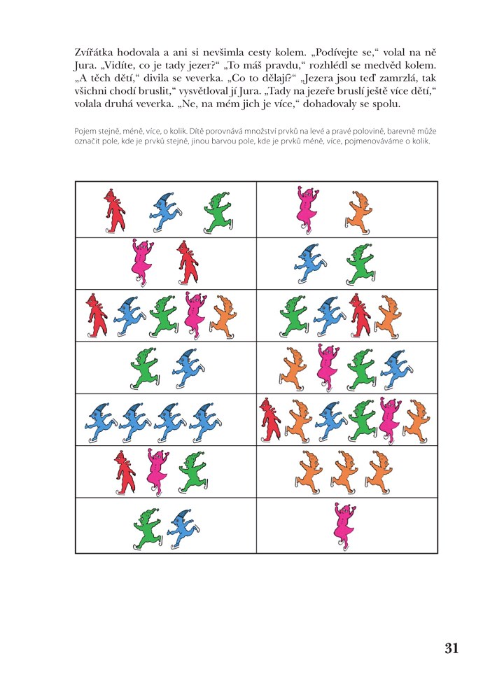 - používání výrazů, jež vedou k porovnávání, srovnávání, vytvoření matematických představ a pojmů