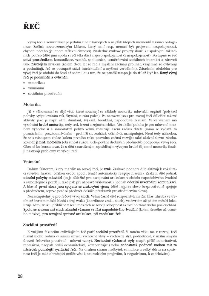 - myšlení a řeči