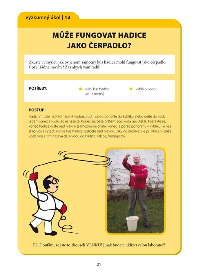 Nezapomeňte se zamyslit nad profesorovými otázkami – až na ně najdete odpověď, budete vědět, že jste postupovali správně a že jste opravdu pochopili, o čem vlastně pokusy vypovídají. Kdykoli se vám některý podaří, můžete pozvat kamarády nebo rodiče a podělit se s nimi o radost z experimentování a poznávání!
