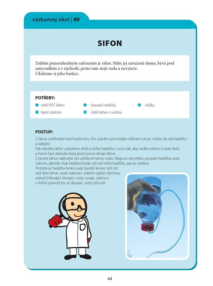 Autor ve své knize mladým čtenářům nabízí návody na mnoho zajímavých experimentů a zábavných vynálezů pro horké letní dny, a to zejména s využitím PET lahví. Čtenář se tak může nejen podivovat a přemýšlet nad rozmanitým chováním vody, jejího vlnění nebo způsobů ohřevu, ale může si také vyzkoušet konstrukci pomůcek a zařízení pro různé letní hrátky. Experimenty zahrnují živou i neživou přírodu a všechny jsou proveditelné s pomocí snadno dostupného vybavení, které lze najít v každé domácnosti. Děti se zabaví na dlouhé hodiny a ještě se mnohému přiučí.