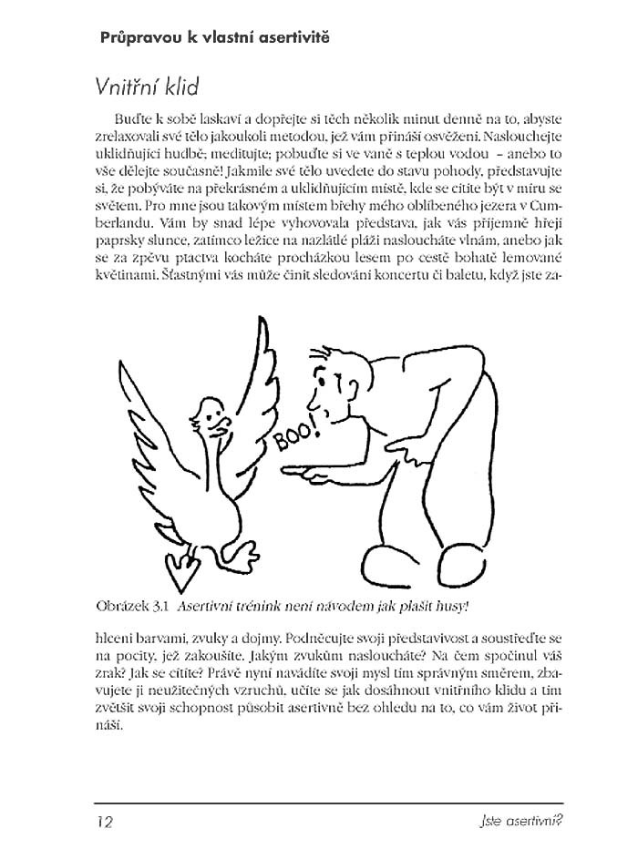 Útlá publikace vám rychle a přehledně vysvětlí, co pod pojem asertivita spadá, jak je při jednání důležité ovládat vnitřní napětí a pozitivně se vyjadřovat. Pomocí testů si můžete zjistit, nakolik jste asertivní právě vy, a ve zbývající, stěžejní části knihy se můžete vylepšit v činnostech, jako jsou naslouchání, technika hovoru, přizpůsobování a připodobňování se, volba slov a frází, ve vnějším projevu i v odmítání žádostí. Naučíte se jednat se vzteklounem, vytrvalcem, padavkou a kritikem, abyste vždy dosáhli svého cíle. Procvičíte se i ve správné kritice nebo skládání komplimentů.