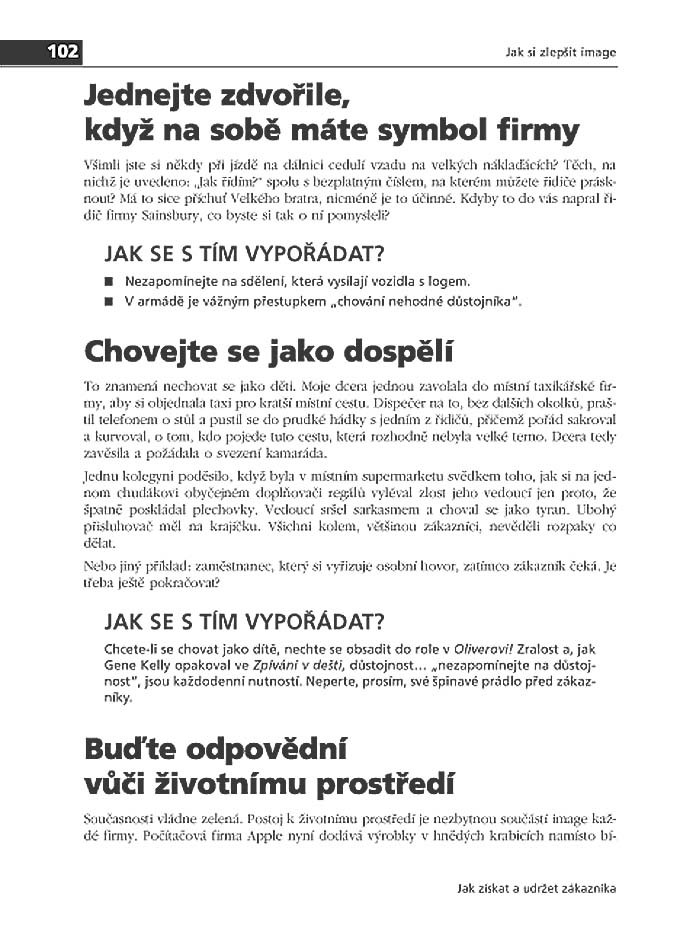 Publikace poskytuje řadu rad i tipů, co všechno můžete na zákazníka nachystat tak, abyste jej lapili do svých sítí a více již nepustili: ať jde o prvotřídní péči a servis, zlepšování kvality zboží i jeho inovaci, a to právě podle toho, jak to chce zákazník, dále proces obchodování – hlavně v oblasti prodejních technik či dovedností, jak máte motivovat vlastní zaměstnance, aby jednali se zákazníkem „v rukavičkách“, co udělat pro to, aby se vám v brzké době vykrystalizovala početná skupina věrných, stálých klientů, a řadu dalších podnětů.