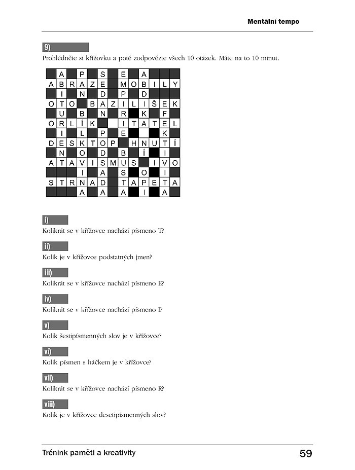 Cvičení jsou navržena tak, aby zábavnou formou posílila právě zmiňované mozkové aktivity. Odměnou vám bude zvýšení vaší mentální výkonnosti, které jistě zúročíte jak v zaměstnání, tak při vašich koníčcích a zálibách.