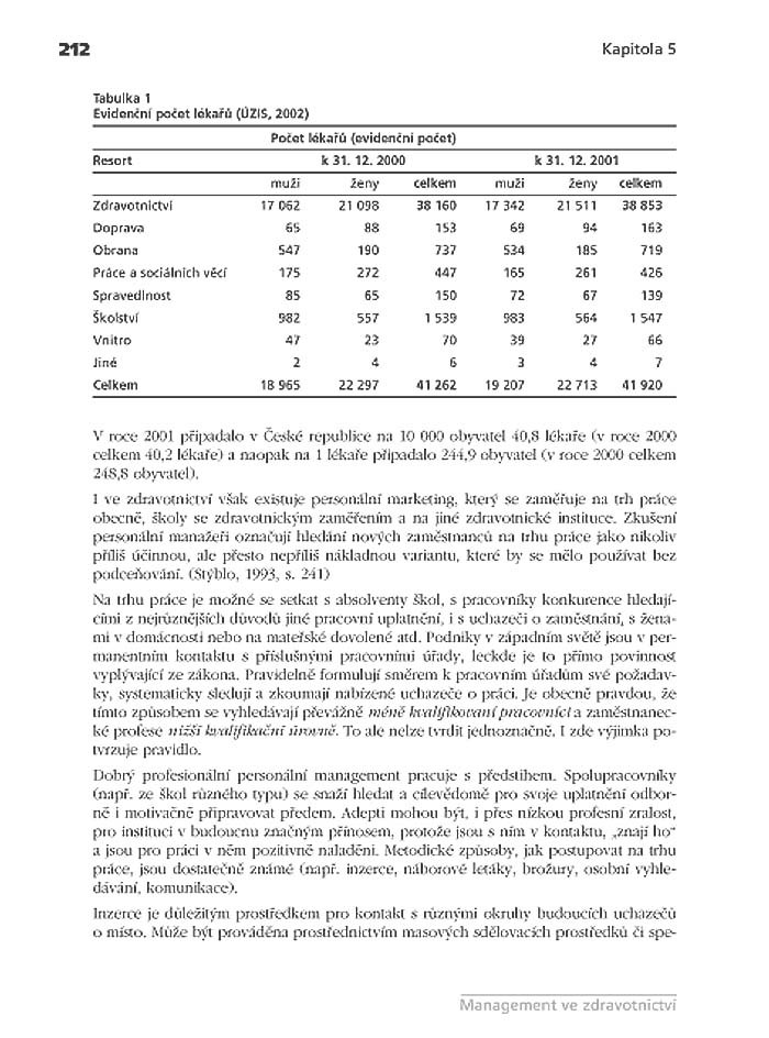 - co je příznačné pro personální činnosti ve zdravotnictví