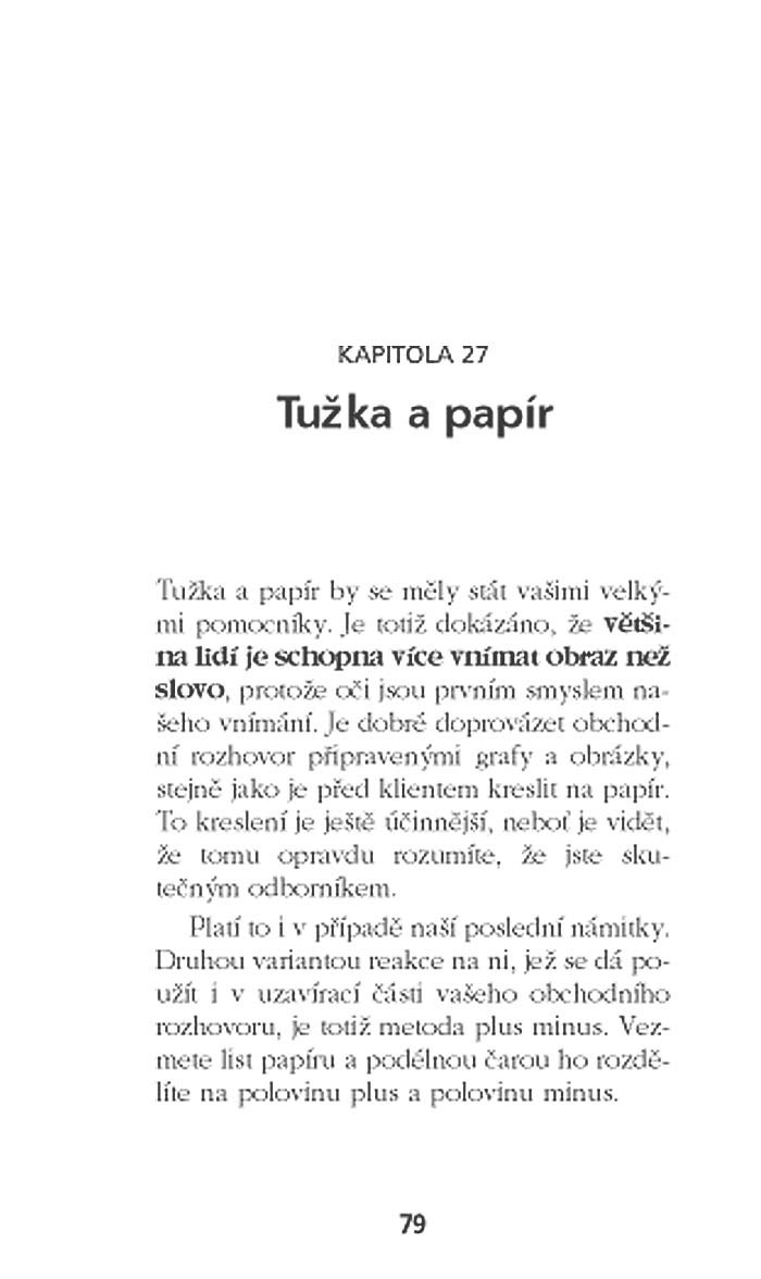 Publikace je určena pro obchodníky a prodejce, denně bojující v „poli“ se zákazníkem. Poskytne vám 33 praktických rad, jak si máte obchodní jednání domluvit, jak se na ně připravit i jak je s úspěchem realizovat.