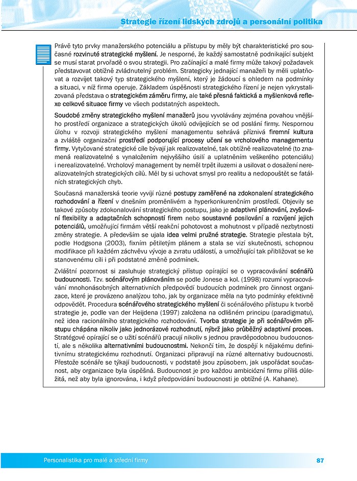 Kniha je určena pro ty, kteří zabezpečují v menší firmě personální záležitosti. Poskytne vám informace, rady a postupy, jak zabezpečit všechny nezbytné činnosti: plánování lidských zdrojů, nábor pracovníků, trénink a rozvoj zaměstnanců, systémy odměňování, péče o zaměstnance (zdravotní, sociální, bezpečnostní předpisy) i ukončování pracovního poměru. Publikace je doplněna okomentovanými částmi zákona, které s danou personální problematikou souvisejí.