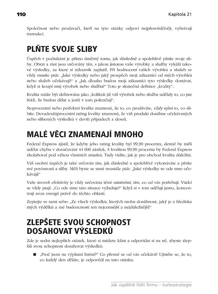 „Tato kniha je transformační, a její přístup je praktický a použitelný pro mnoho organizací. Brian Tracy je brilantní poradce, který skutečně ví, jak podnik pozvednout.“