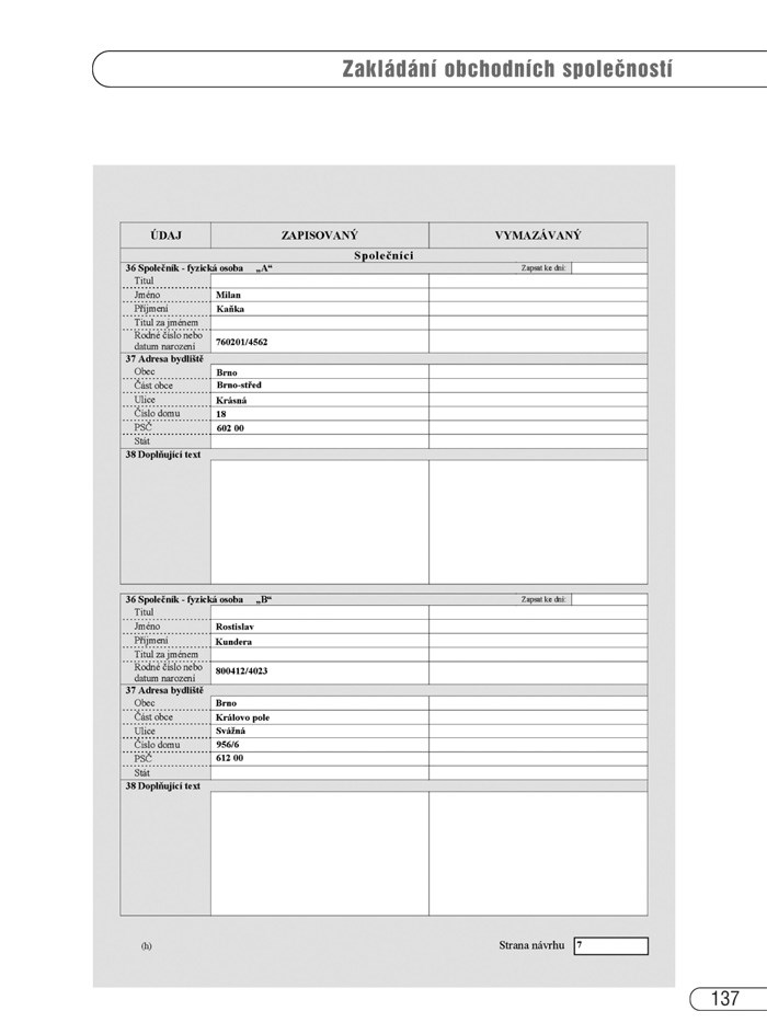 - ukázky vyplněných formulářů potřebných pro založení společností