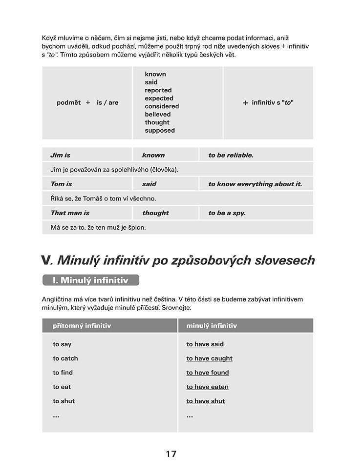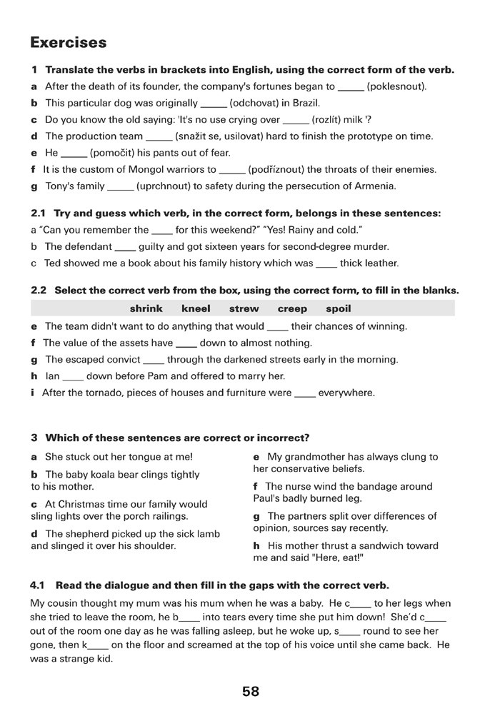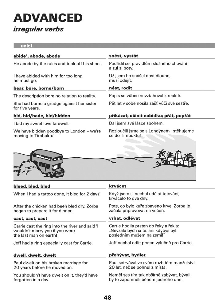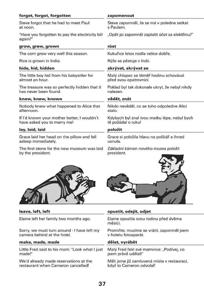 Všechny tři oddíly nabízejí za každým ze sloves vzorové věty. Uvědomíte si tak kontext, jak bývá dané nepravidelné sloveso nejčastěji užíváno. Za každým z oddílů následují cvičení. Samozřejmostí jsou i kontrolní testy s klíčem, najdete je na konci publikace.