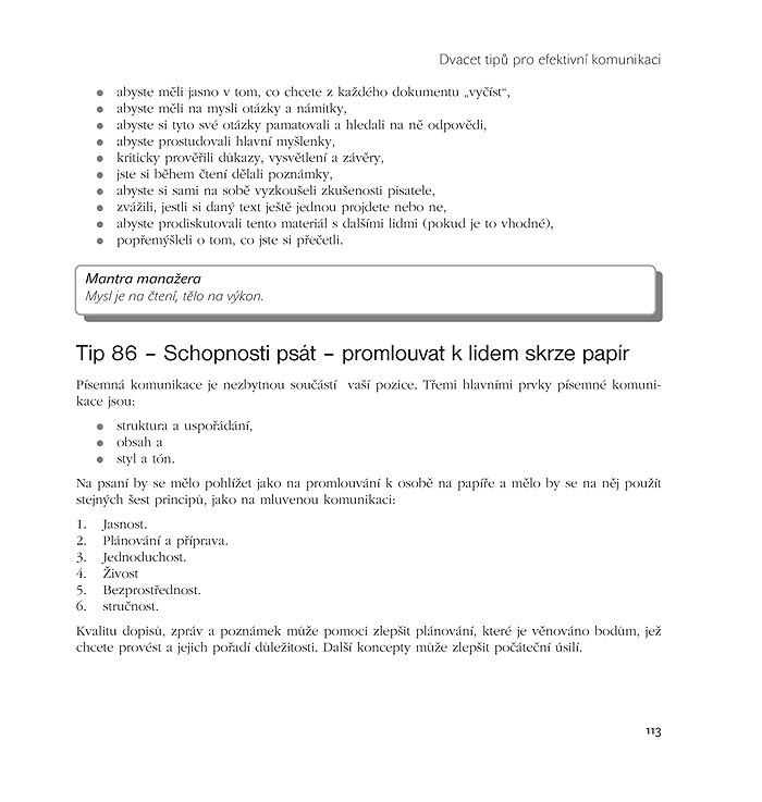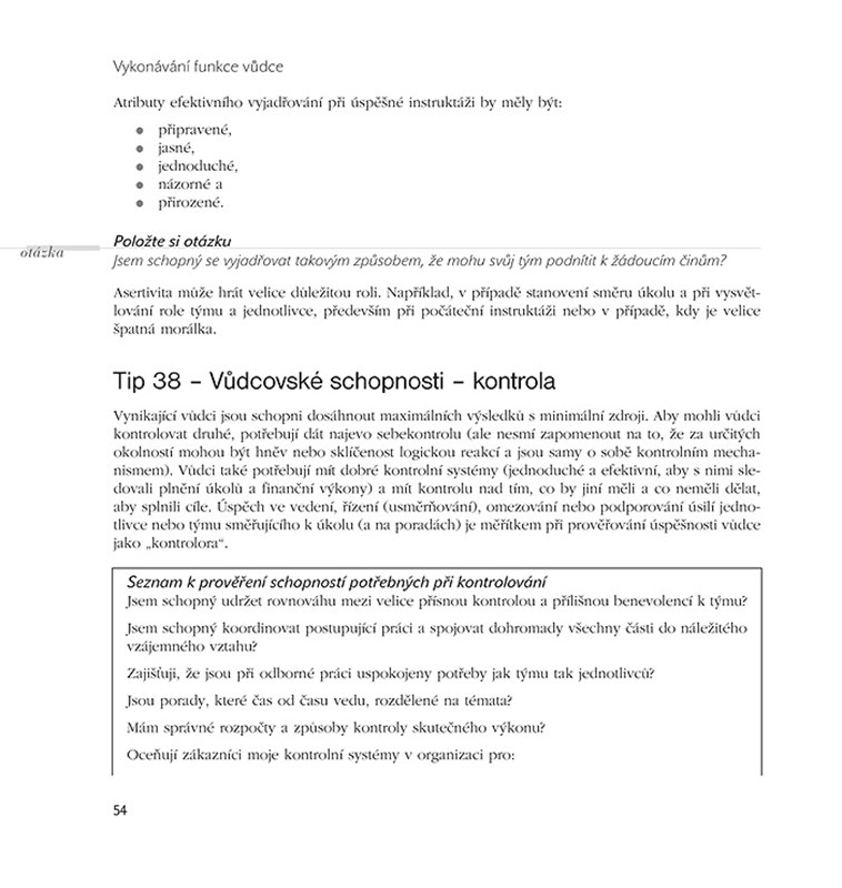Srozumitelných a v praxi použitelných rad pro řízení a vedení lidí je jako „šafránu“. Proto vás jistě potěší kniha 100 tipů jak úspěšně řídit a vést lidi, určená manažerům a vedoucím pracovníkům, kteří hledají inspiraci pro svou vůdcovskou roli, a nezáleží na tom, jestli ve vedoucí funkci teprve začínají nebo jsou již zkušenými vůdci. V knize mimo jiné naleznete: