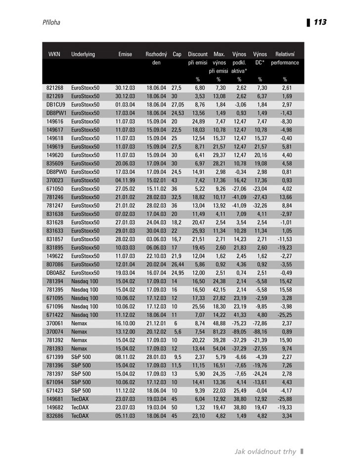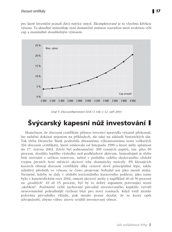 Přiložené CD obsahuje řadu cenných dat. Pomohou vám zorientovat se v tom, jak se chovají a vyvíjejí finanční trhy. Nabídne vám i discount kalkulátor, jedinečnou a užitečnou pomůcku pro každého investora!