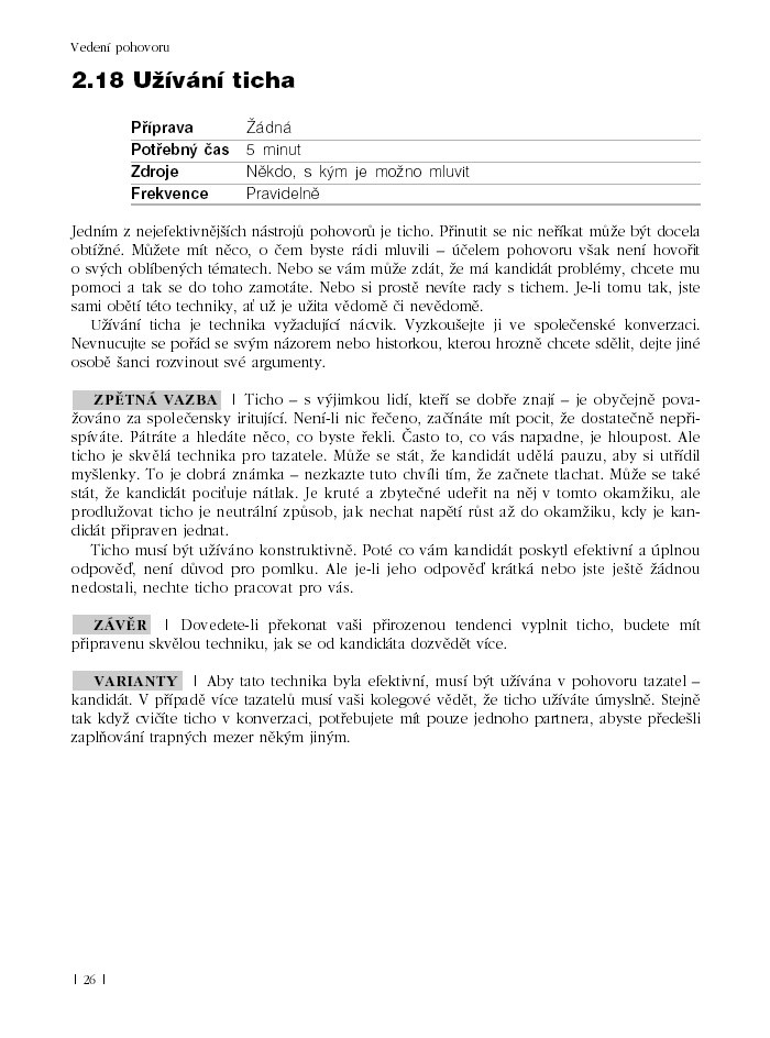Vedení pohovoru je součástí práce každého manažera. Bohužel až příliš často je tento důležitý úkol svěřován lidem, kteří mají pouze malou, nebo vůbec žádnou průpravu. Chcete-li získat nejlepšího kandidáta, nebo vytěžit co nejvíce z interního pohovoru, musíte se tomuto umění naučit a zdokonalovat ho.