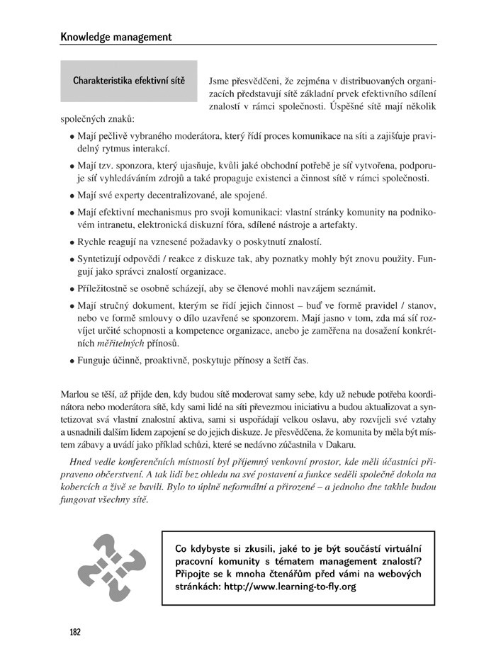 Kniha ukazuje, jak uplatnit teorii managementu znalostí v praxi: popisuje nástroje a poznatky dvou předních odborníků na oblast managementu znalostí, je tedy nepostradatelná pro manažery, kteří chtějí zahájit nebo oživit iniciativy managementu znalostí ve svých firmách.